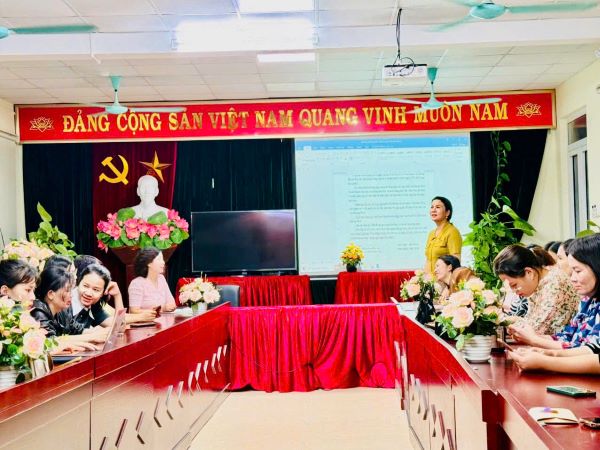 Buổi tập huấn do nhà giáo Nguyễn Thị Huyền – Phó Hiệu trưởng nhà trường trực tiếp hướng dẫn giúp cán bộ giáo viên hiểu thêm về năng lực số, khung năng lực số và vai trò của khung năng lực số đối với học sinh. Qua buổi tập huấn nhà trường đã triển khai Kế hoạch phát triển năng lực số cho học sinh đến toàn thể càn bộ, giáo viên trong nhà trường.