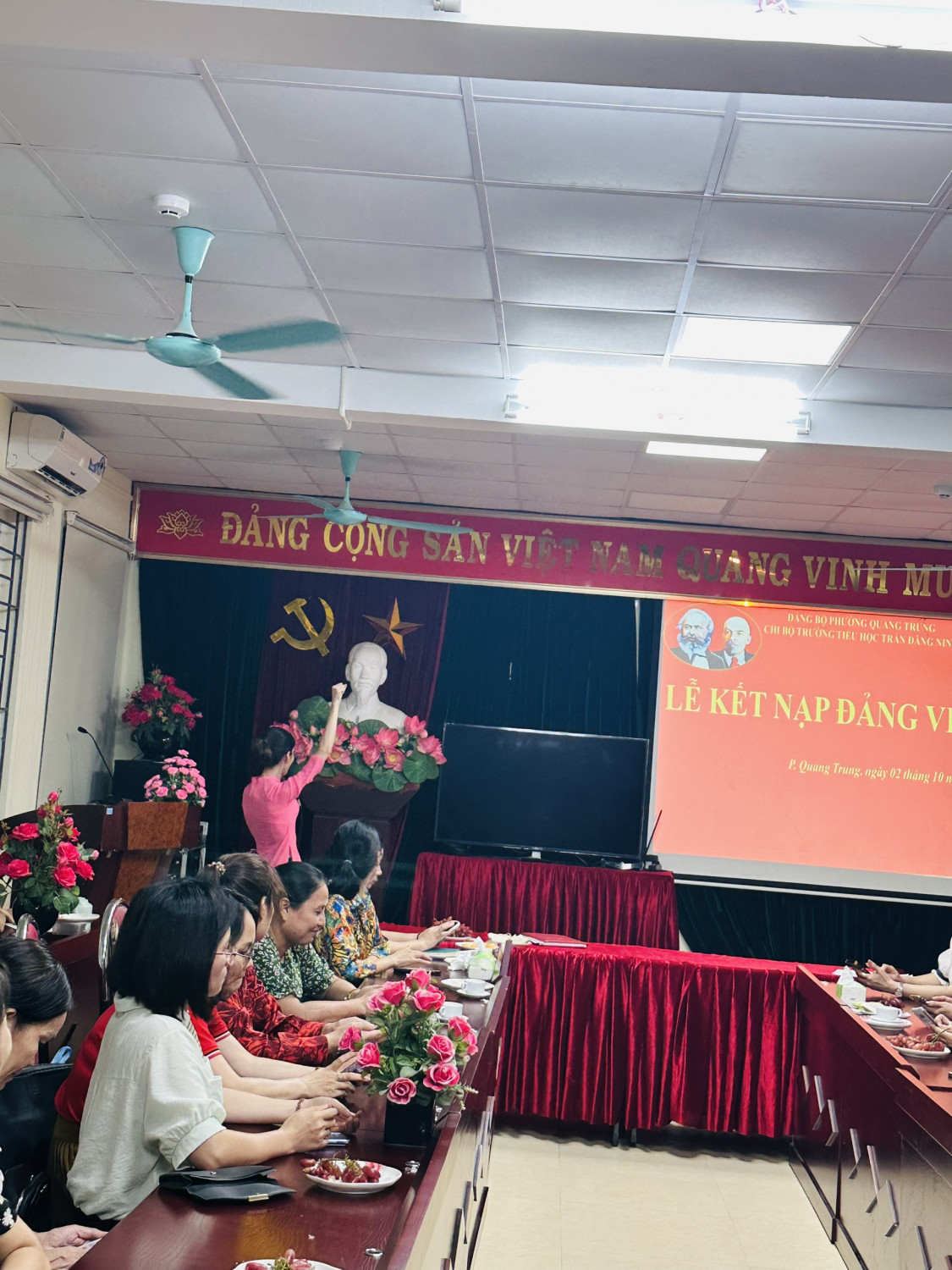 Lễ kết nạp diễn ra theo đúng trình tự, thủ tục điều lệ Đảng dưới sự chủ trì của đồng chí Nguyễn Thị Hương Giang – Bí thư Chi bộ, Hiệu trưởng nhà trường. Rất vinh dự được đứng trong hàng ngũ của Đảng quần chúng Lê Thị Thu Thủy đã không ngừng phấn đấu và tu dưỡng rèn luyện theo lý tưởng của giai cấp công nhân Việt Nam, của Chủ tịch Hồ Chí Minh và tôn chỉ mục đích của Đảng Cộng sản Việt Nam, được chi bộ và quần chúng tín nhiệm cao.