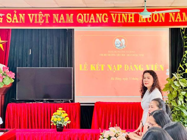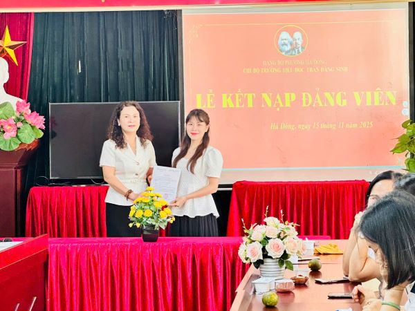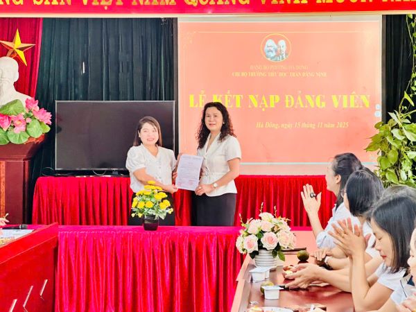 Thực hiện Quyết đinh của Đảng bộ phường Hà Đông ngày 15/11/2025, Chi bộ trường Tiểu học Trần Đăng Ninh đã tổ chức Lễ kết nạp đảng viên cho 02 quần chúng ưu tú Vũ Thị Diệu Linh – GVCN lớp 1A6 và Đinh Thị Lệ Mỹ - GVCN lớp 5A1.