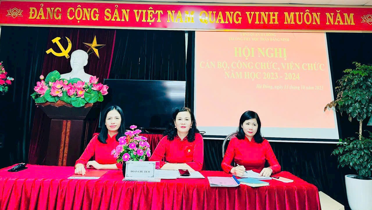 Thực hiện hướng dẫn của Liên đoàn Lao động quận Hà Đông về việc hướng dẫn tổ chức Hội nghị Công chức – Viên chức, Người lao động. Ngày 13/10/2023, trường tiểu học Trần Đăng Ninh tổ chức Hội nghị Công chức, viên chức, người lao động, năm học 2023 – 2024.