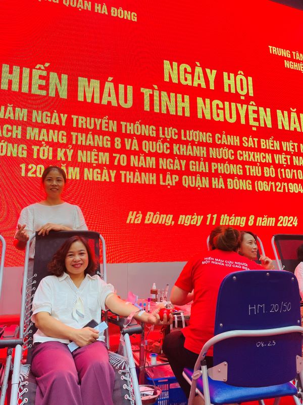 Hưởng ứng phong trào hiến máu tình nguyện năm 2024 của Liên đoàn Lao động quận Hà Đông. Sáng ngày 12/8/2024, các đồng chí trong Công đoàn trường Tiểu học Trần Đăng Ninh đã có mặt tại trường hội trường Trung tâm đào tạo và bồi dưỡng nghiệp vụ Cảnh sát Biển số 94 Lê Lợi, phường Nguyễn Trãi, Hà Đông để được tư vấn, kiểm tra sức khoẻ và làm các thủ tục tham gia hiến máu tình nguyện. Với tinh thần “Thương người như thể thương thân”, “Mỗi giọt máu cho đi, một cuộc đời ở lại” không chỉ là một thông điệp mà còn thể hiện ý nghĩa nhân văn sâu sắc. Hiến máu nhân đạo là một trong những phong trào lớn hiện nay của toàn xã hội, là một hoạt động đầy ý nghĩa và mang đậm tính văn hóa, nhân văn, thể hiện trách nhiệm với cộng đồng. Nghĩa cử hiến máu cứu người còn góp phần quan trọng trong việc cứu sống người bệnh và hỗ trợ họ vượt qua khó khăn trong quá trình điều trị. Đây là hoạt động thường niên được Liên đoàn Lao động quận Hà Đông tổ chức và nhận được sự ủng hộ của đông đảo các đồng chí Công đoàn viên trong đó có Công đoàn viên trường Tiểu học Trần Đăng Ninh.