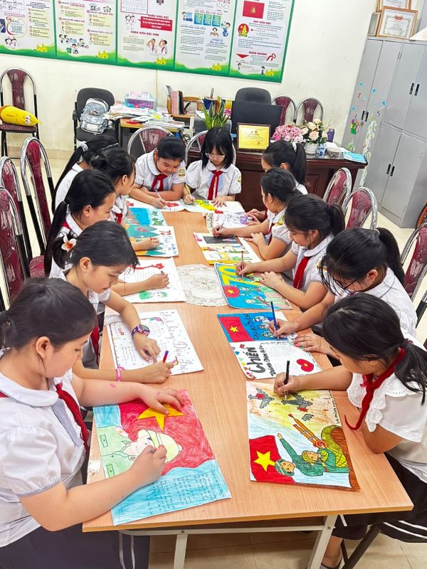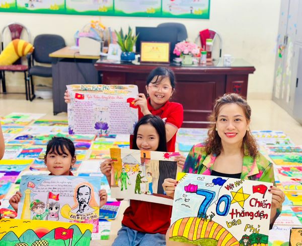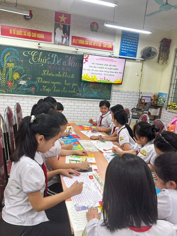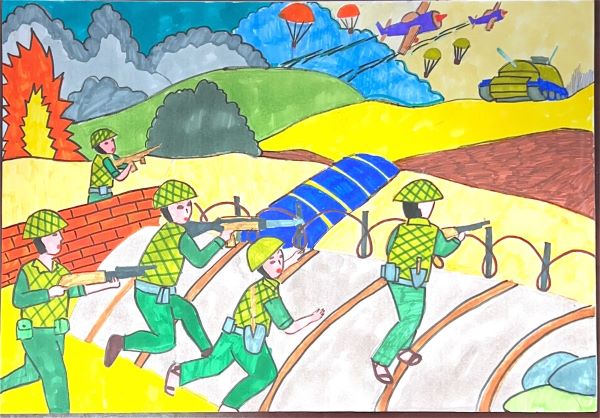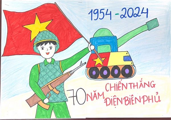 Hướng tới chào mừng 70 năm chiến thắng Điện Biên Phủ (7/5/1954-7/5/2024), nhằm giáo dục truyền thống yêu nước, tinh thần tự hào dân tộc, lòng biết ơn đối với các anh hùng, liệt sỹ đã hy sinh vì sự nghiệp giải phóng dân tộc, vì độc lập, tự do và hạnh phúc của nhân dân, ý nghĩa của Chiến thắng Điện Biên Phủ đối với lịch sử đấu tranh giải phóng dân tộc của nhân dân Việt Nam, từ đó các em có ý thức rèn luyện, phấn đấu học tập góp phần xây dựng quê hương, đất nước, đồng thời tạo sân chơi bổ ích cho các em phát huy sự sáng tạo, phát triển năng khiếu góp phần nâng cao chất lượng giáo dục toàn diện trong nhà trường, các em học sinh, thực hiện kế hoạch của Hội đồng Đội V/v làm sổ tay tri ân chiến sĩ nhân kỉ niệm 70 năm chiến thắng Điện Biên Phủ, trường Tiểu học đã phát động cuộc thi vẽ tranh được các em nhiệt tình hưởng ứng và tham gia Hãy cùng ngắm nhìn những tác phẩm mà các em