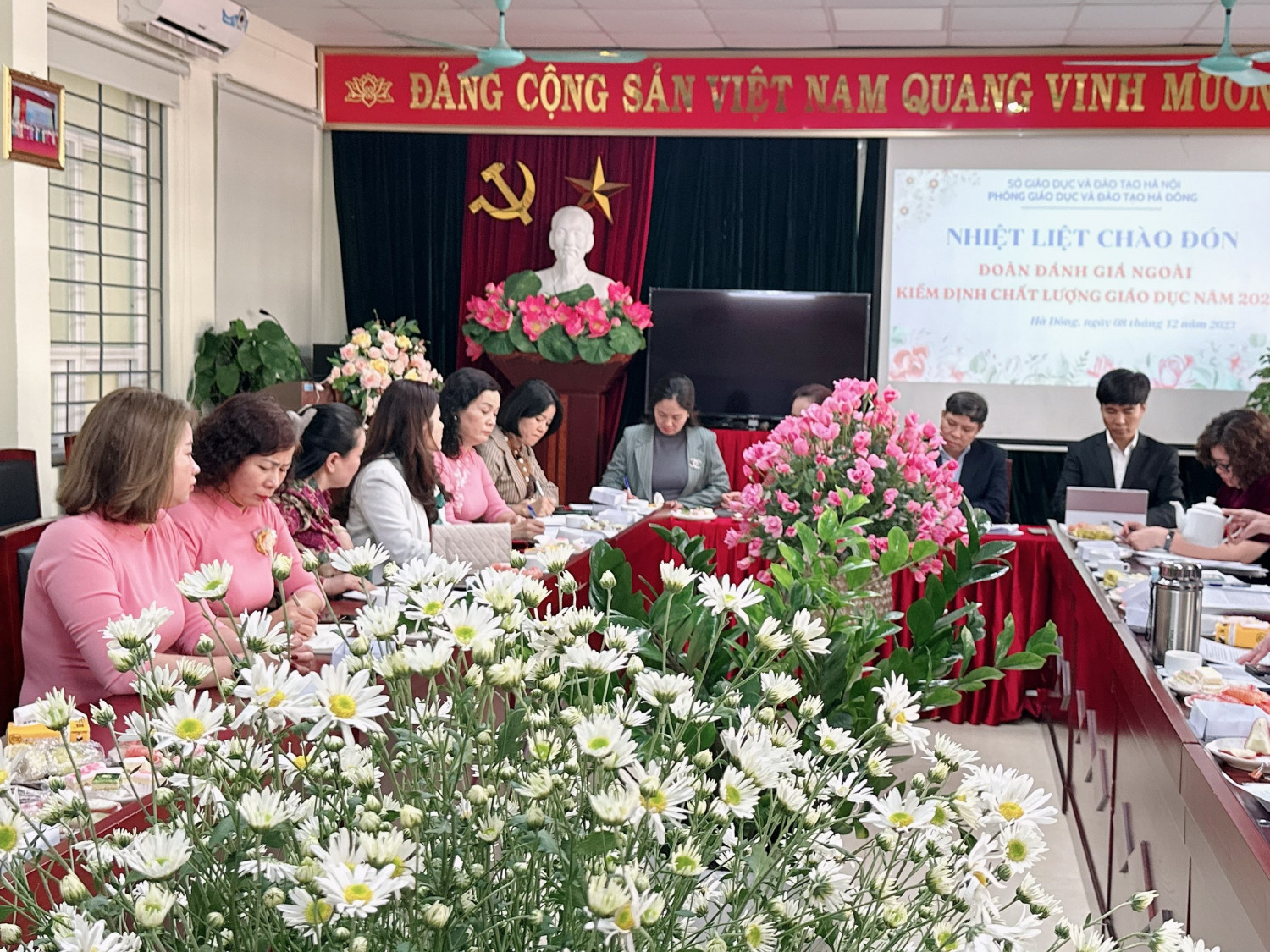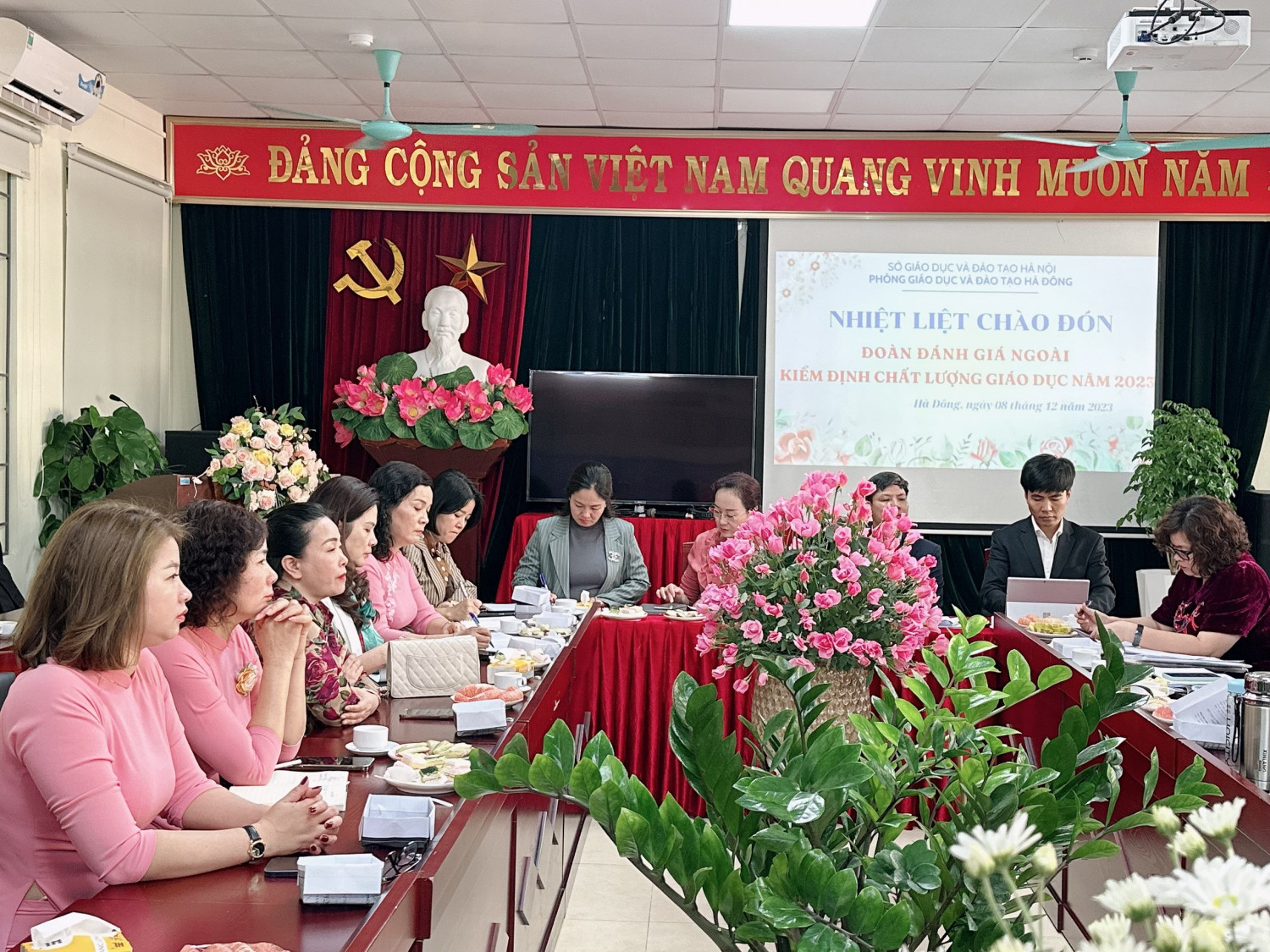 Công tác kiểm định chất lượng giáo dục đóng vai trò quan trọng nhằm xác định trường tiểu học đạt mức đáp ứng mục tiêu giáo dục trong từng giai đoạn; lập kế hoạch cải tiến chất lượng, duy trì và nâng cao chất lượng các hoạt động của nhà trường; thông báo công khai với các cơ quan quản lý nhà nước và xã hội về thực trạng chất lượng của trường tiểu học; để cơ quan quản lý nhà nước đánh giá, công nhận trường đạt Kiểm định chất lượng giáo dục và tái công nhận chuẩn Quốc gia theo Thông tư 17/2018/TT-BGDĐT ngày 22 tháng 8 năm 2018 của Bộ trưởng Bộ Giáo dục và Đào tạo; Hướng dẫn số 5932/BGDĐT-QLCL ngày 28 tháng 12 năm 2018 của Bộ Giáo dục và Đào tạo hướng dẫn tự đánh giá và đánh giá ngoài cơ sở giáo dục phổ thông. Đoàn đánh giá ngoài kiểm định chất lượng giáo dục của Sở Giáo dục và Đào tạo Thành phố Hà Nội gồm 1. Đ/c Đào Xuân Lý – Trưởng phòng Giáo dục Tiể học - Sở giáo dục - Trưởng đoàn; 2. Đ/c Nguyễn Hồng Thủy, Chuyên viên, Phòng Giáo dục Tiểu học, Sở giáo dục - Thư ký; 3. Đ/c Nguyễn Thị Sinh – HT trường Tiểu học Tứ Hiệp, Thanh Trì - Thành viên; 4. Đ/c Nguyễn Lệ Hằng – Hiệu trưởng trường TH Thanh Xuân Nam, Thanh Xuân - Thành viên; 5. Đ/c Nguyễn Thị Kiều Loan – Hiệu trưởng trường TH Than Xuân Trung, Thanh Xuân - Thành viên; 6. Đ/c Phạm Xuân Thủy – Hiệu trưởng trường TH Ngũ Hiệu, Thanh Trì - Thành viên; 7. Đ/c Nguyễn Thị Thanh Nhàn – Phó Hiệu trưởng trường TH Hạ Đình, Than Xuân - Thành viên Thành phần tham dự và tiếp đoàn có đ/c Phạm Thị Lệ Hằng - trưởng phòng Giáo dục và Đào tạo quận Hà Đông, Đ/C Ngô Đức Kiên - phó trưởng phòng Giáo dục và Đào tạo quận Hà Đông; Bà Nguyễn Hương Giang – Bí thư Đẳng ủy phường Quang Trung; Bà Nguyễn Thị Thủy - Phó chủ tịch Ủy ban nhân dân phường Quang Trung và Hội đồng tự đánh giá chất lượng giáo dục Trường Tiểu học Trần Đăng Ninh. Trong buổi làm việc, Đoàn đã nghiên cứu báo cáo, tài liệu do nhà trường cung cấp, các thông tin minh chứng, xem xét những vấn đề cần lưu ý, gặp gỡ, trao đổi, phỏng vấn các thành viên của Hội đồng tự đánh giá, phỏng vấn CB, GV, NV và học sinh; quan sát các trang thiết bị dạy học, kiểm tra cơ sở vật chất...của nhà trường