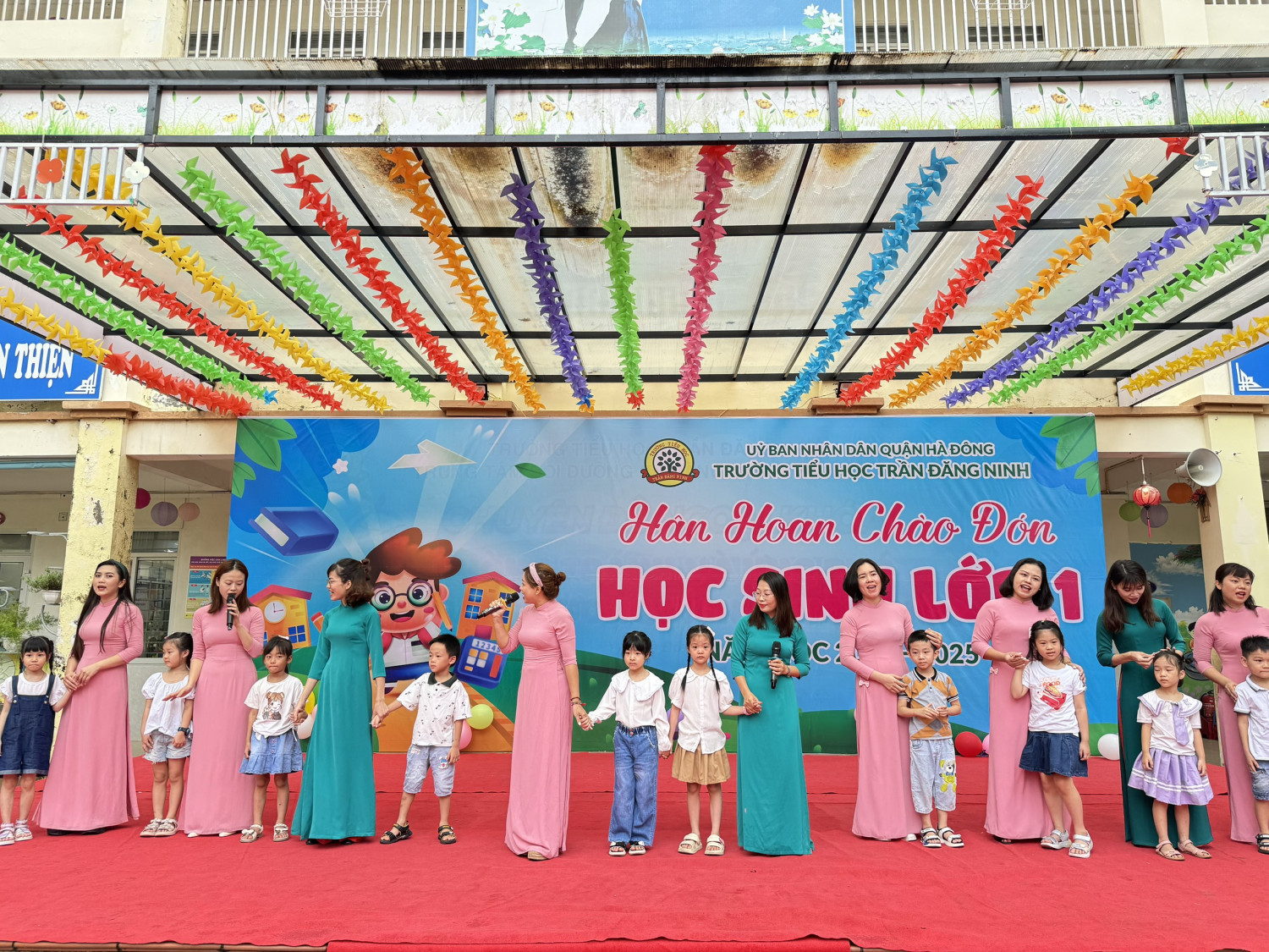Chương trình chào đón học sinh lớp 1 đã khép lại song những dư âm đẹp đẽ về buổi lễ sẽ đọng lại mãi trong tâm trí của các thầy cô giáo, các bậc phụ huynh và các em học sinh. Từ hôm nay, các em học sinh lớp 1 sẽ cùng nhau học tập, cùng nhau vui chơi dưới mái trường Tiểu học Trần Đăng Ninh – ngôi trường với bề dày thành tích trong nhiều năm qua, với đội ngũ các thầy cô giáo tâm huyết, yêu nghề mến trẻ. Trường Tiểu học Trần Đăng Ninh sẽ là TRƯỜNG HỌC HẠNH PHÚC, là mái nhà thứ hai, là nơi ươm mầm những ước mơ tuổi thơ của các em . Mỗi ngày đến trường là một ngày vui, các em sẽ được đón nhận những tình cảm yêu thương, những bài học hay, bổ ích mà thầy cô dành cho các em . Đó là hành trang đầu tiên giúp các em đến với cánh cửa của tri thức, khơi dậy trong tâm hồn trong sáng của các em những bài học làm người. Chúc các em một năm học mới đạt được nhiều thành công – mỗi em sẽ là một bông hoa đẹp góp phần tô điểm cho vườn hoa Trần Đăng Ninh thêm rực rỡ.