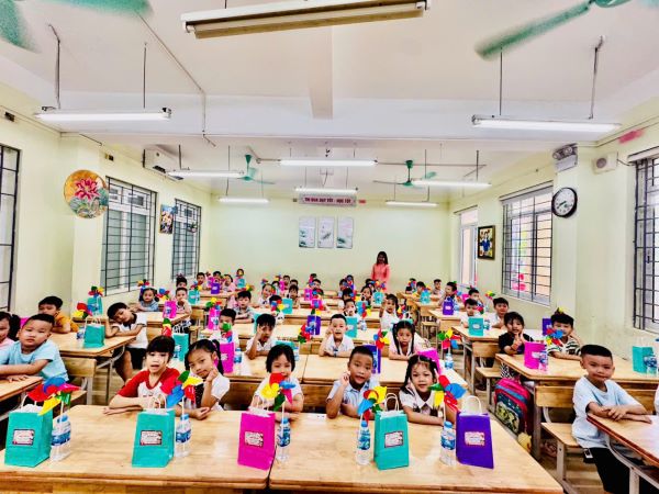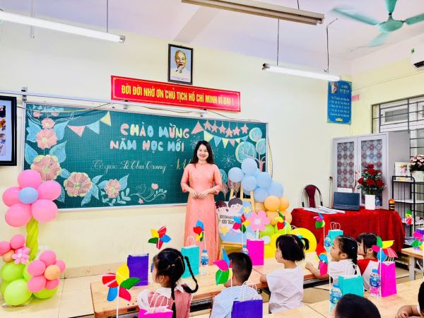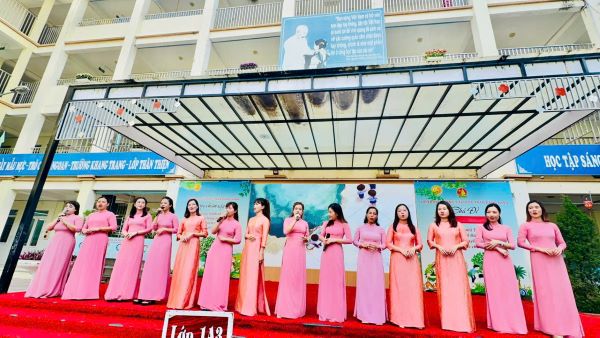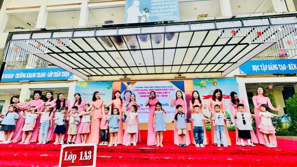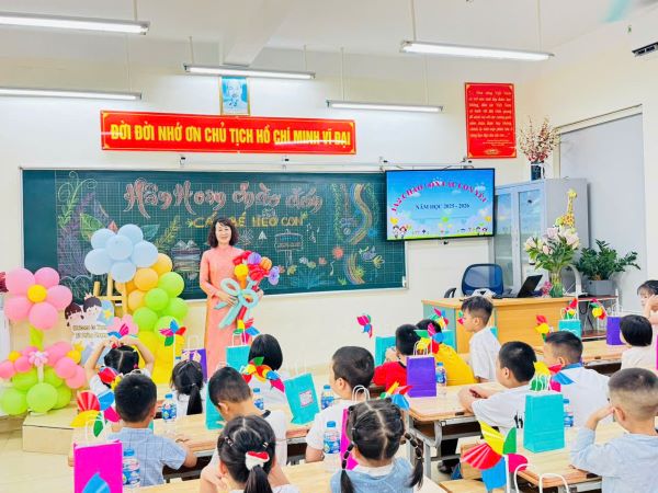 Món quà đầu tiên mà nhà trường dành tặng cho các em học sinh chính là những tiết mục tiết mục văn nghệ sôi động và vui tươi đến từ các thầy cô giáo trong Chi đoàn nhà trường. Qua bài hát, các cô giáo đã gửi gắm tình cảm của mình tới các em học sinh thân yêu. Sau đó, nhà trường giới thiệu Ban giám hiệu, 6 cô giáo chủ nhiệm của khối 1, để các em học sinh và các phụ huynh có thể nắm được những thầy cô giáo sẽ đồng hành với con trong suốt năm học.