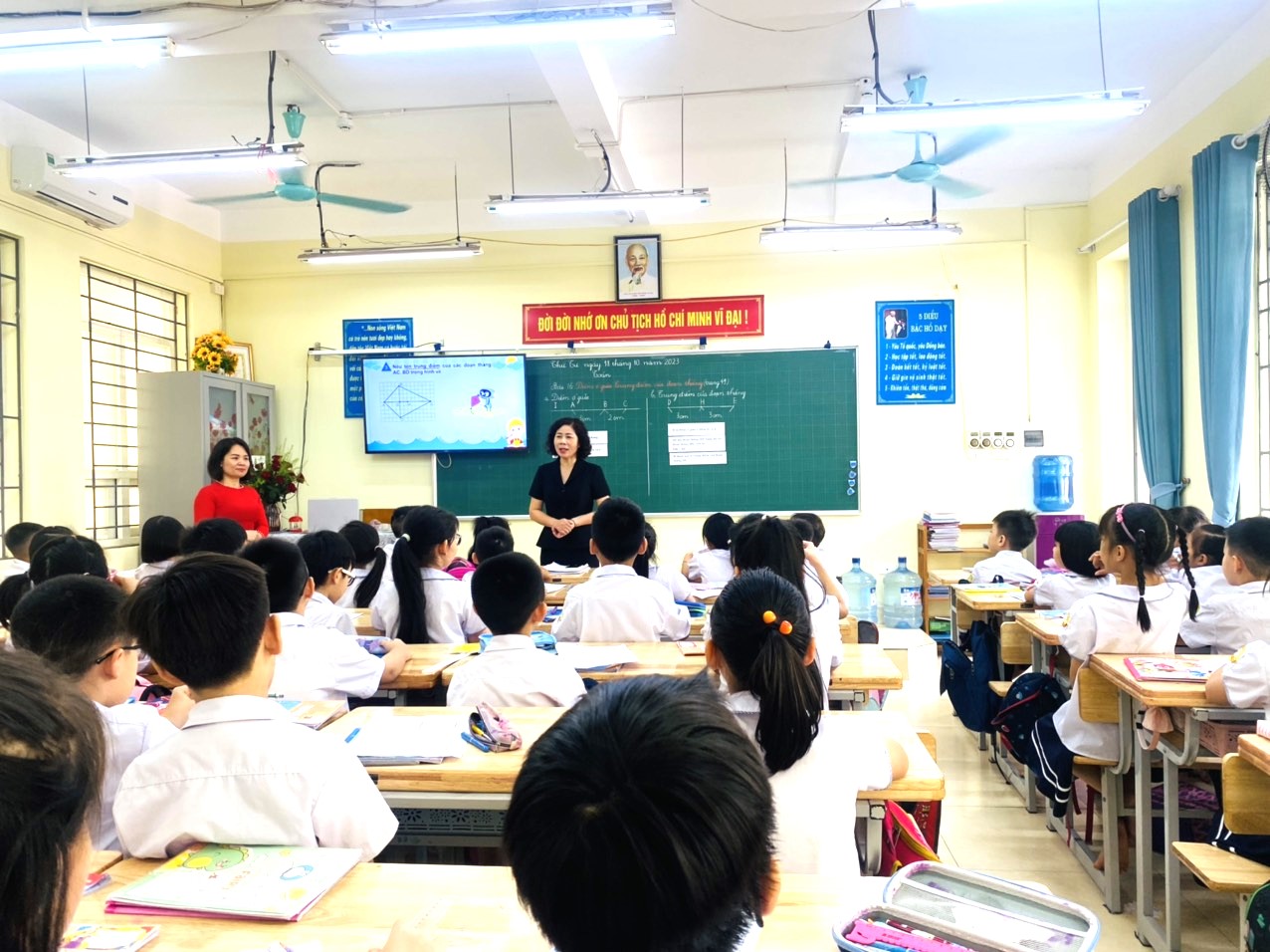 Thực hiện kế hoạch chuyên môn tháng 10 của nhà trường, Cô giáo Lê Thị Hồng Vân, giáo viên chủ nhiệm lớp 3A6 đã thực hiện thành công chuyên đề môn Toán lớp 3 Bài 16: Điểm ở giữa, trung điểm của đoạn thẳng