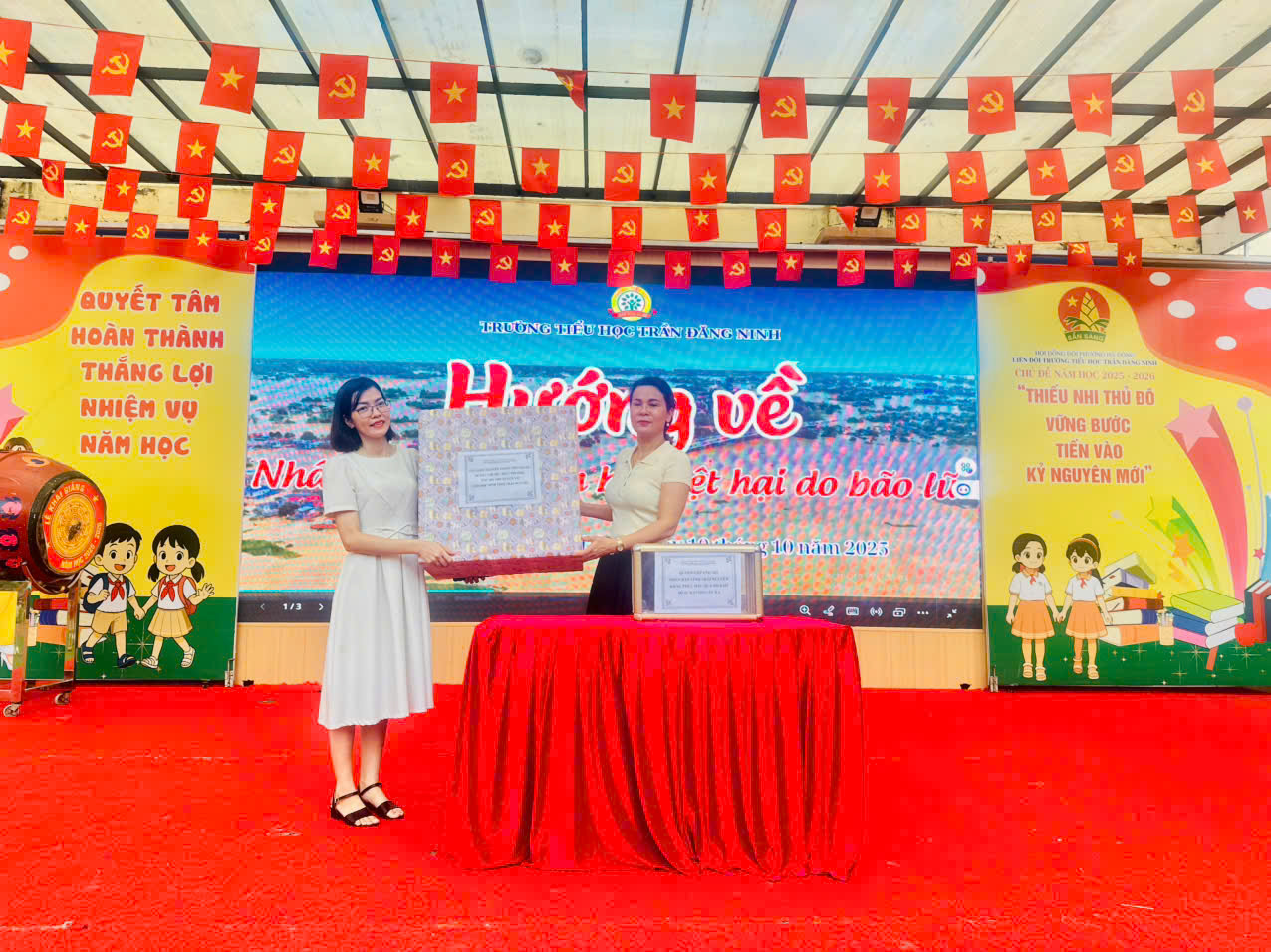 TRƯỜNG TIỂU HỌCTRẦN ĐĂNG NINH QUYÊN GÓP ỦNG HỘ SÁCH VỞ, ĐỒ DÙNG HỌC TẬP CHO HỌC SINH CÁC TỈNH VÙNG BÃO LŨ