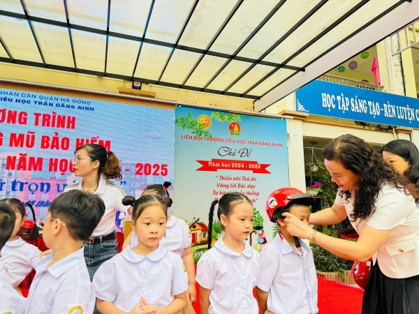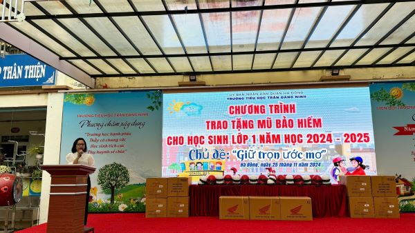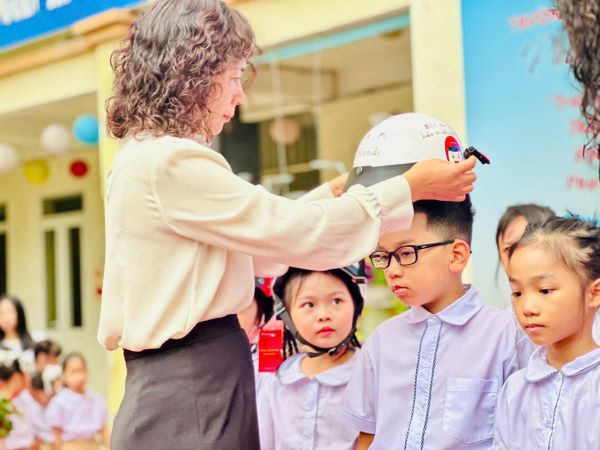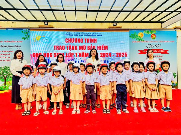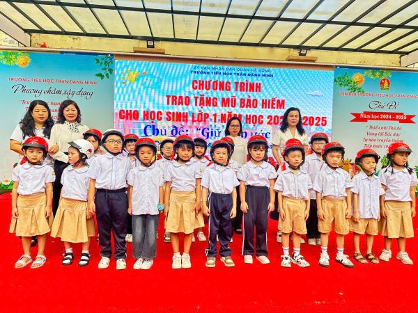 Trao tặng mũ bảo hiểm cho học sinh khối 1 năm học 2024 - 2025