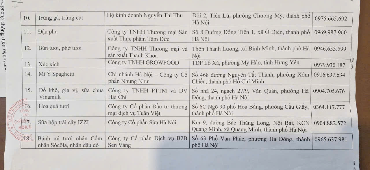 Nhằm đảm bảo sức khỏe cho học sinh, đồng thời tạo sự yên tâm, tin tưởng cho quý phụ huynh, nhà trường xin công khai danh sách các đơn vị cung cấp thực phẩm cho bếp ăn bán trú trong năm học 2025 – 2026 như sau: